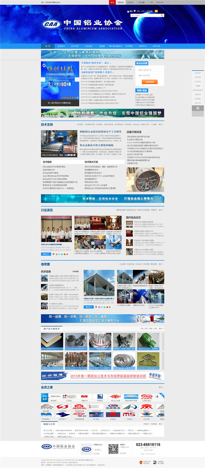 Project Description 中国铝业协会是由中国国内主要从事铝合金铸造、板、带、箔、管、棒、型材、锻件等企业组成的行业协会组织,协会由国内具有一定规模和影响力的企业发起,已有三百多家会员企业,目前还有很多企业踊跃希望加入,协会现有会员企业年销售额1000多亿元人民币,协会会员企业分布在国内华东、华南、西南、环渤海、东北、胶东半岛等中国经济活跃地区;产品涵盖航空航天、兵器装... Official website address 资阳http://www.caa2014.com I want to share